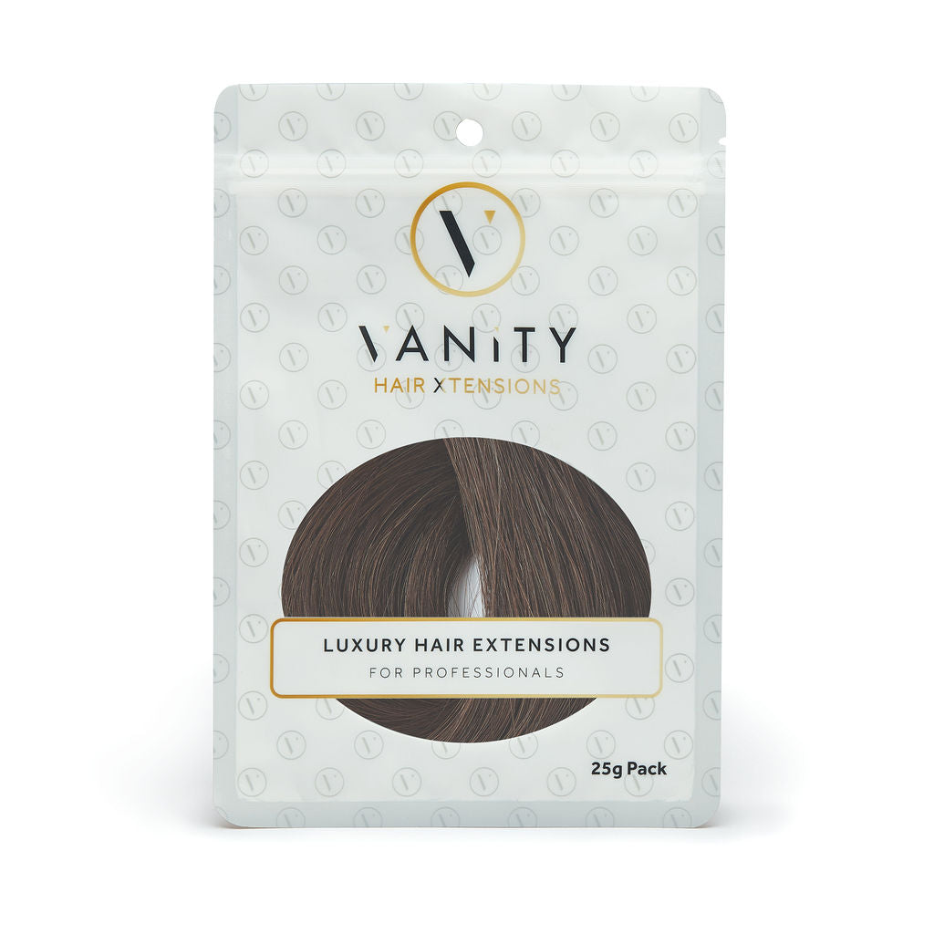 100% virgin luxury human hair U-Tip extensions with strong Italian keratin bonds. All U-Tips are 1g strands and sold in 25gram bundles. Vanity's 100% human hair extensions are super soft and last between 12-18 months with the right aftercare.